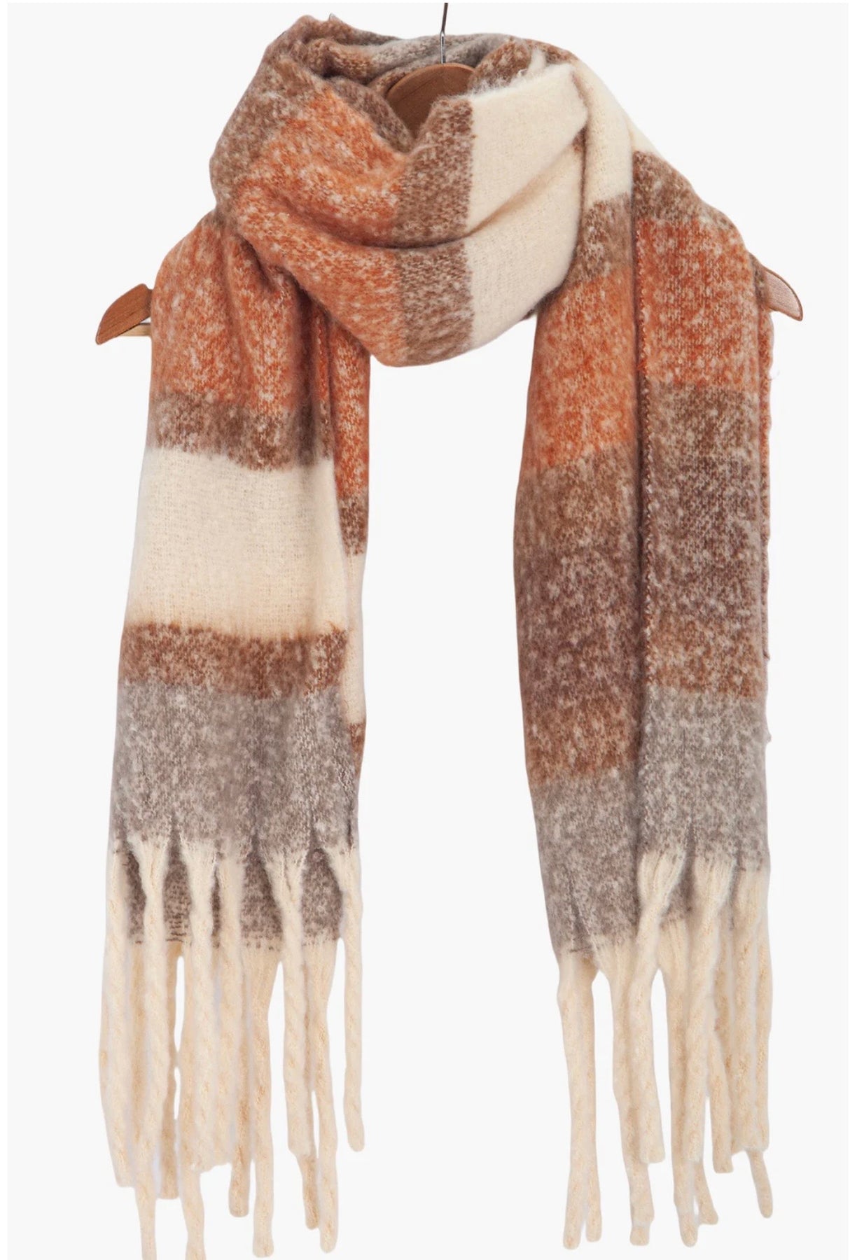 Wrap yourself in pure warmth with Cannella, our heavyweight winter scarf inspired by the cosy tones of cinnamon. The soft brushed texture feels incredibly gentle on the skin, while the warm blend of rust, caramel and cream instantly adds depth to any winter outfit. Its generous length makes it easy to wrap twice for extra warmth or style loosely over your favourite coat, and the delicate tassel fringe gives it that effortless Italian-chic finish. A beautifully cosy, versatile scarf designed to keep you snug and stylish all season long.