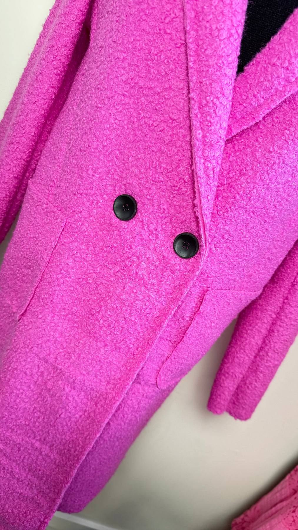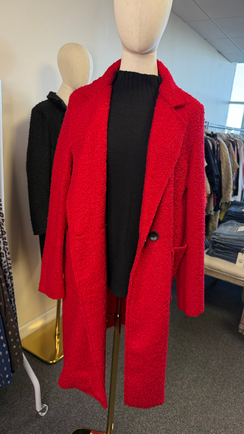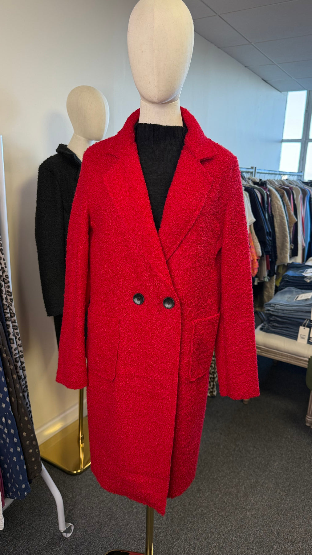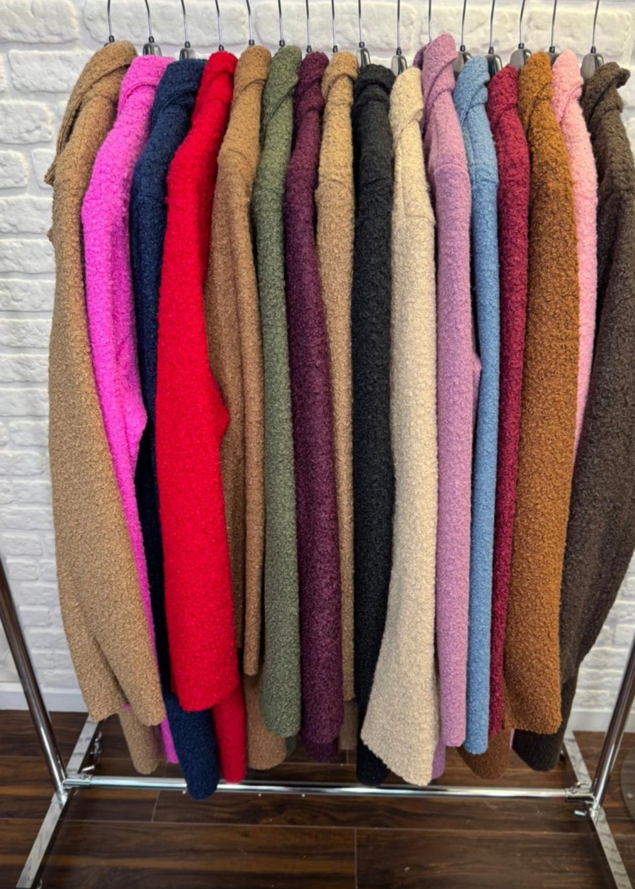 Wrap yourself in pure comfort with the Teddy Bouclé Italian Coatigan – Abbraccio, a beautifully soft unlined Italian coatigan that offers the ideal balance between medium-lightweight feel and impressive warmth. The plush teddy bouclé textured knit holds in heat naturally, and because it’s unlined, you can easily layer it over all your winter jumpers—making it much warmer than it looks. Designed in a chic longline silhouette, it features elegant notched lapels, a double-button front, and practical deep pockets, giving you a polished yet relaxed look perfect for everyday styling. Whether you’re heading to work, the school run or a weekend outing, “Abbraccio” wraps you in that cosy, Italian-inspired hug that its name promises.
