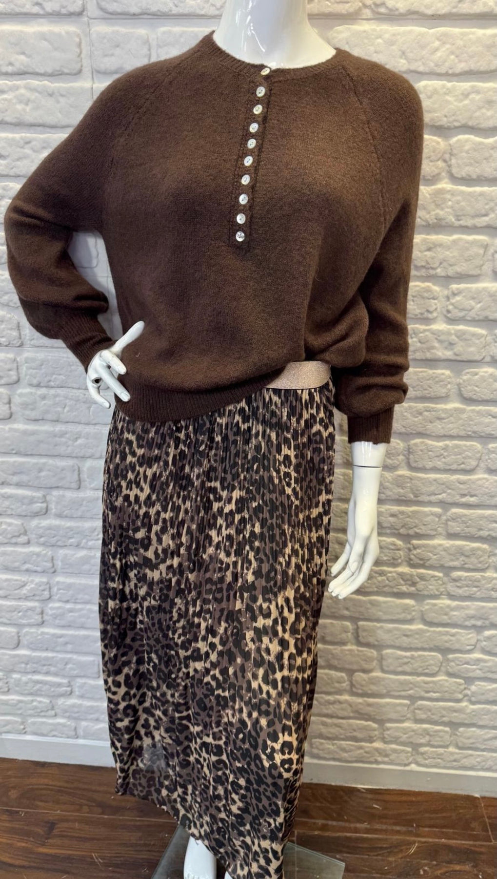 The soft knit alpaca button jumper Delizia is one of those pieces that instantly makes you feel cosy, polished, and effortlessly put together. Crafted in a beautifully soft alpaca blend, Delizia feels light on the skin while still offering that comforting warmth we all love. The refined mother-of-pearl buttons neckline adds a subtle feminine detail, giving this jumper a timeless smart-casual feel that works just as well styled up or down. Designed with an easy fit, it drapes naturally on the body and layers beautifully over camis or under coats as the seasons change. Delizia is the kind of knit you’ll reach for time and time again — perfect paired with our Leona leopard skirts, Renee’ jeans, or styled simply with tailored trousers for an understated, elegant look. A true wardrobe staple that combines softness, versatility, and Italian-inspired charm.