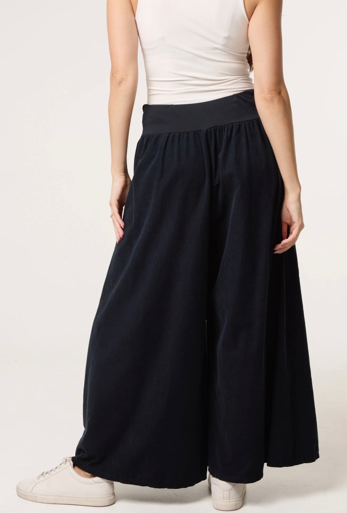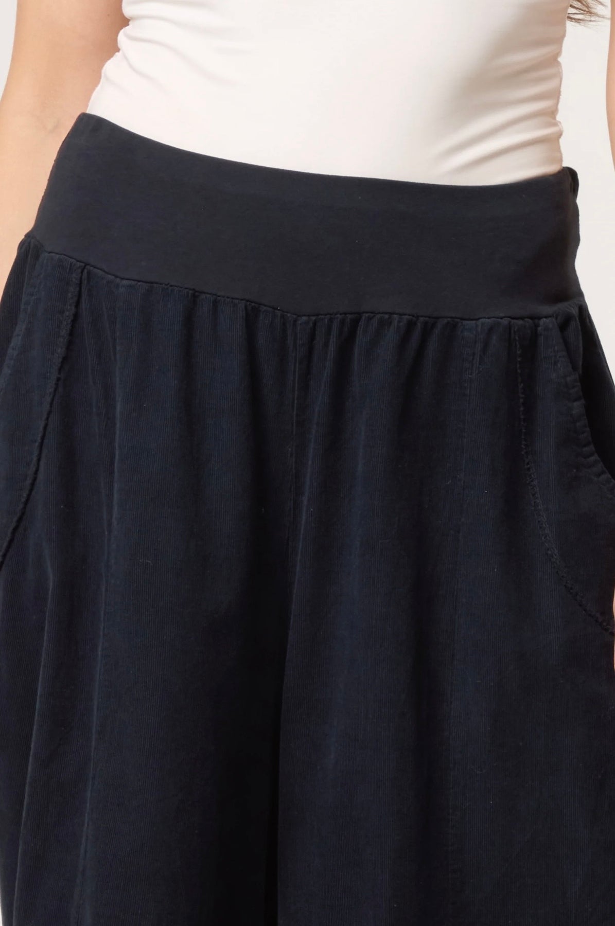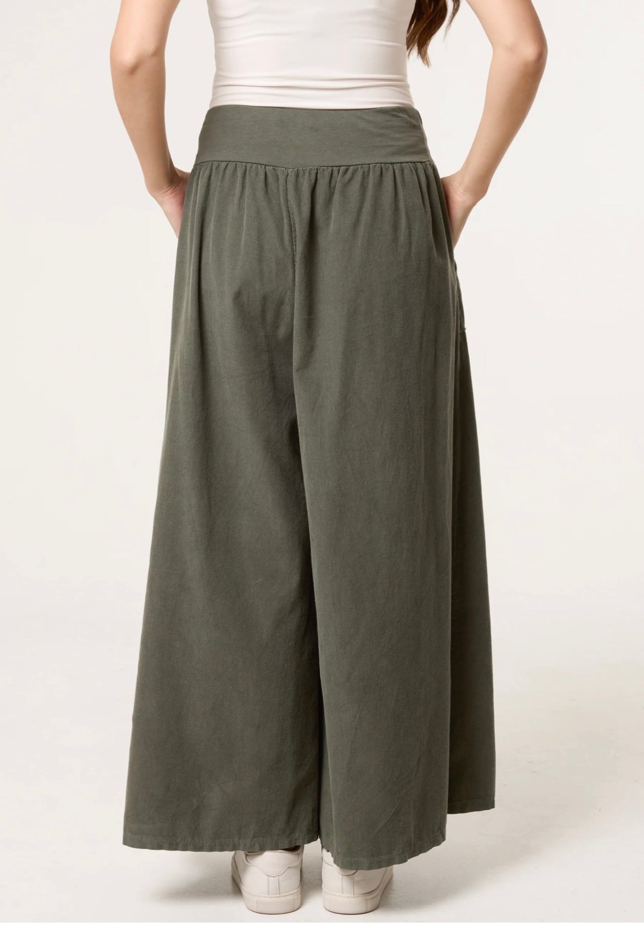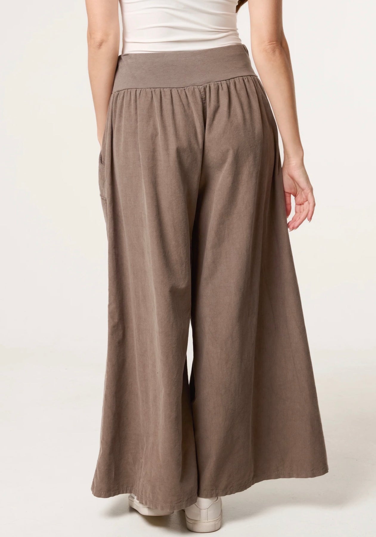 Effortless, timeless and beautifully refined, Velluto palazzo trousers are crafted from very soft corduroy for an elegant yet relaxed finish. Designed with a comfortable elasticated waistband, they sit smoothly on the waist while the wide palazzo leg creates a fluid, flattering silhouette that moves beautifully. The rich corduroy texture gives Velluto an instantly expensive-looking appeal, making them perfect for both everyday wear and elevated smart-casual styling. Finished with practical side pockets, these trousers combine comfort, versatility and Italian-inspired elegance in one timeless piece. Style with knitwear, soft shirts or simple tees — Velluto is the kind of wardrobe essential that works effortlessly across seasons.
