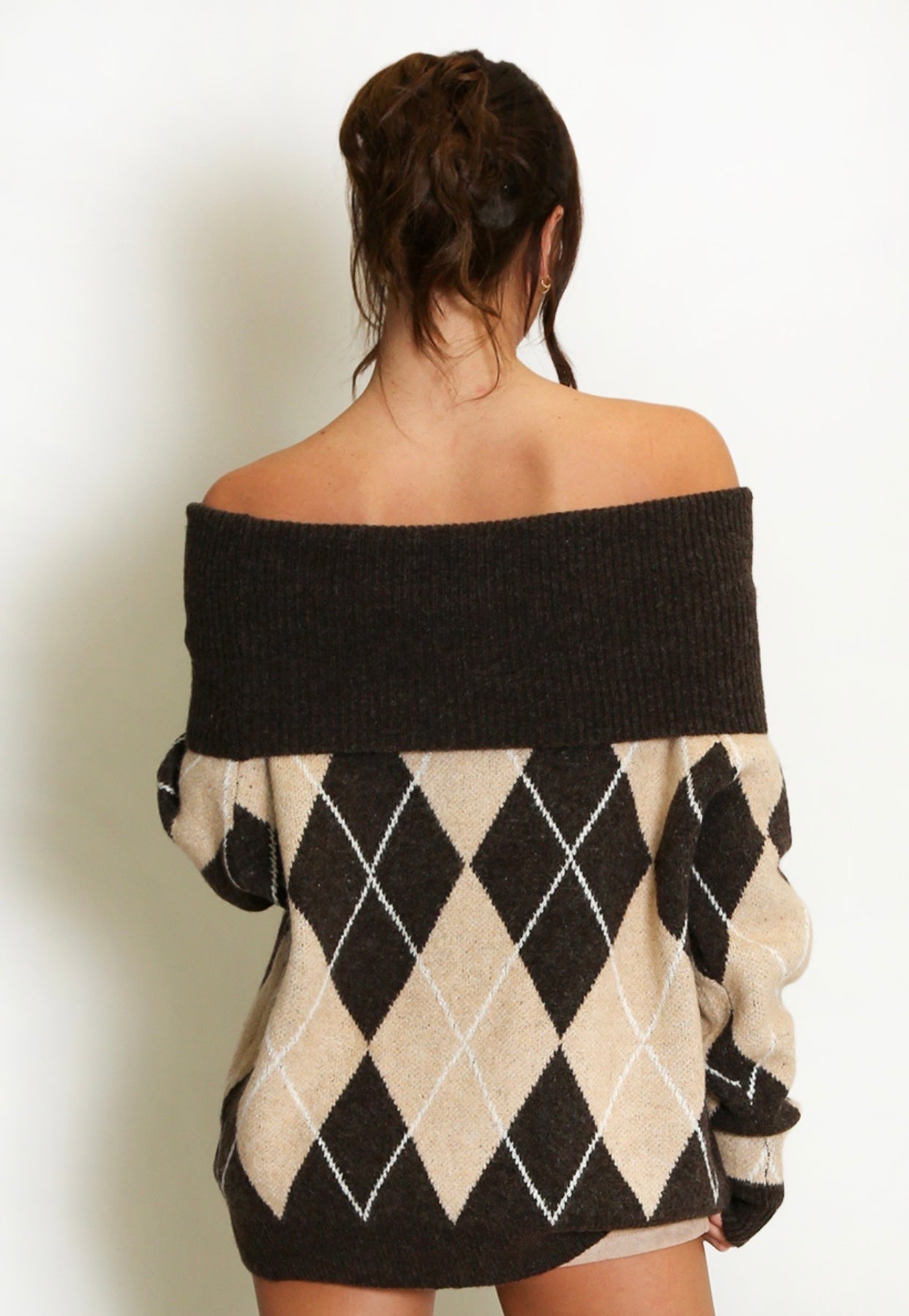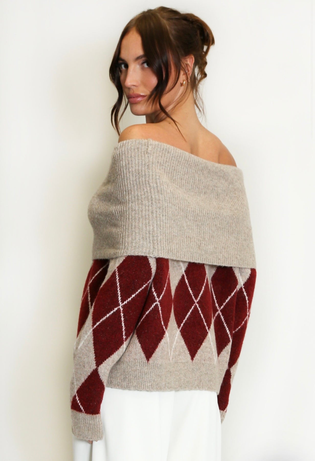 Argyle Wool Blend Off-Shoulder Jumper- Scozia