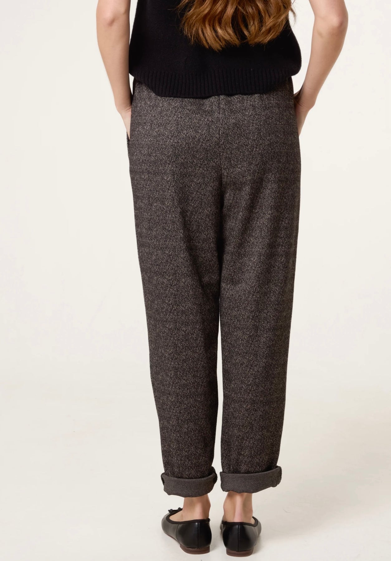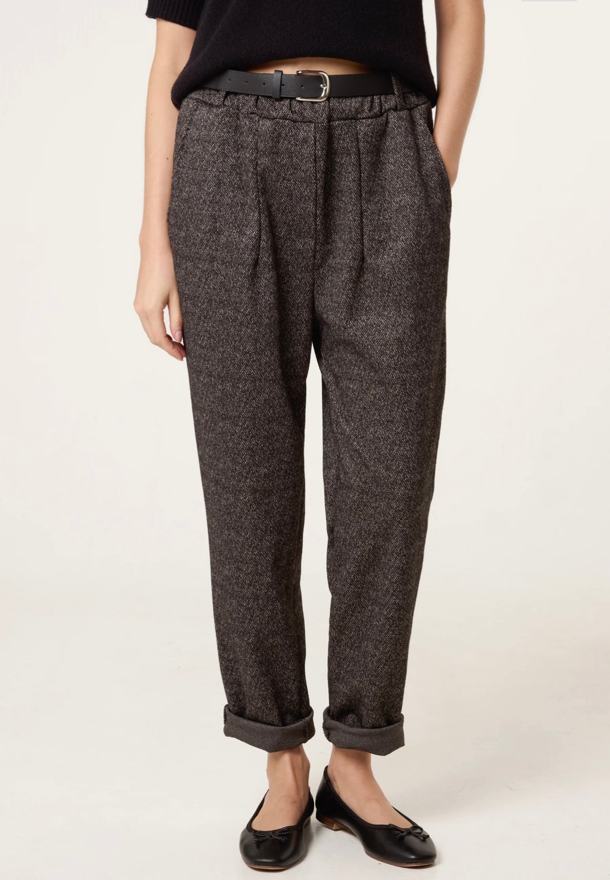Grey herringbone tapered trousers with belt — Londra by Aria Italian Style Boutique.