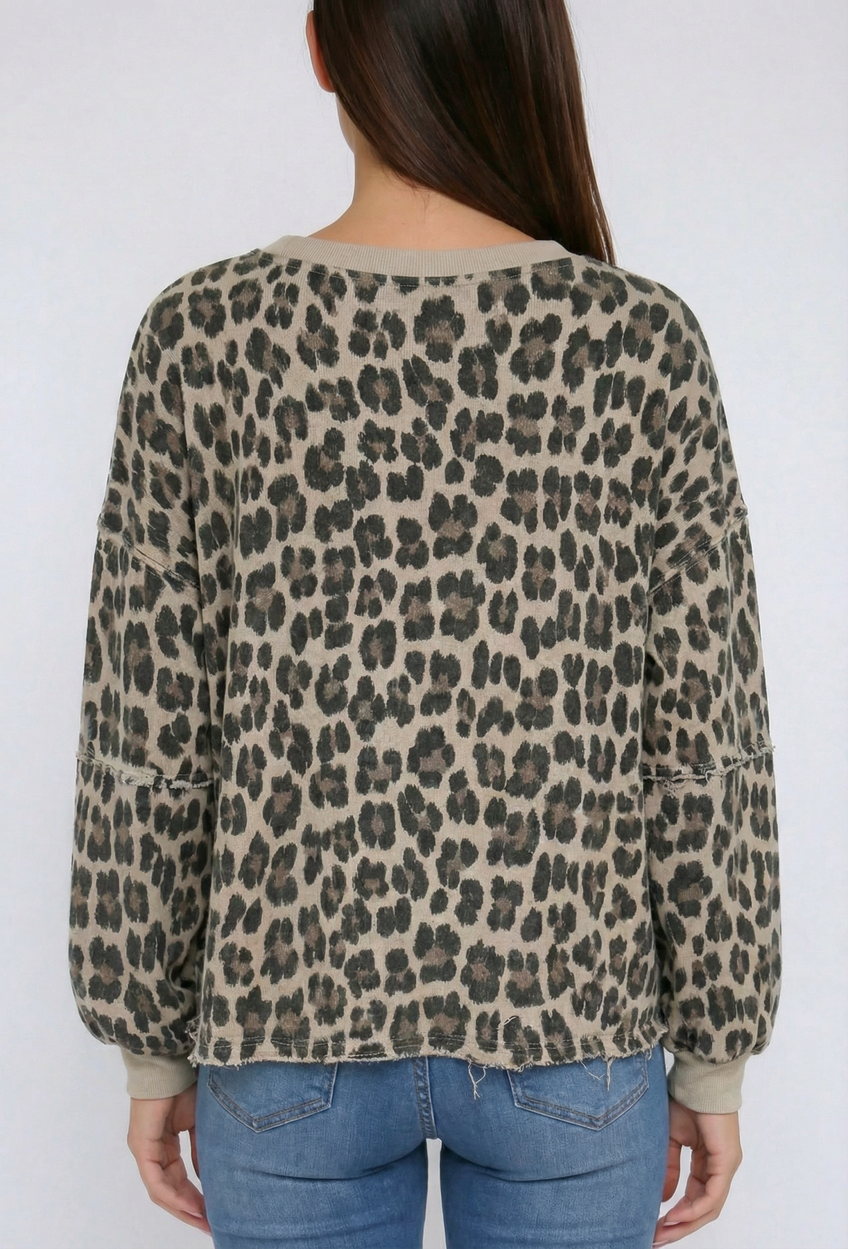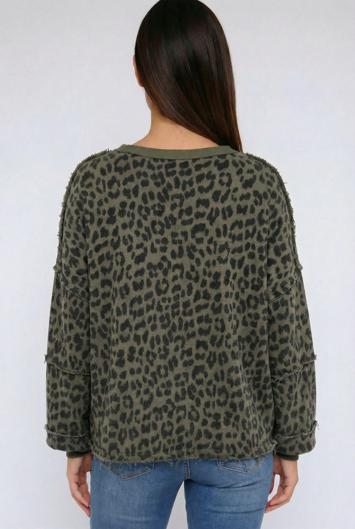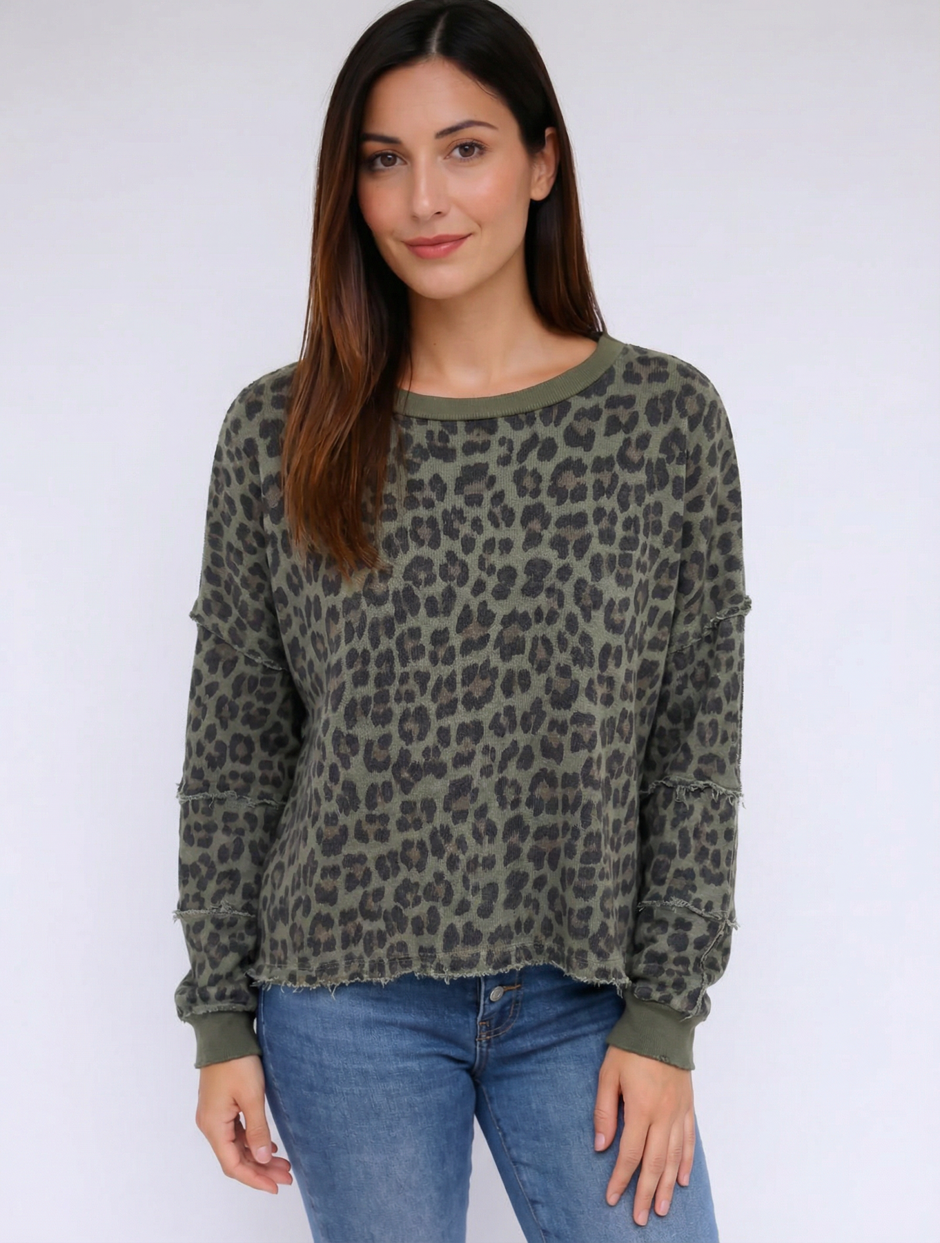 Ground your style this season with Terra, the autumnal sister to our best-selling Selvaggia. Crafted in Italy from the same soft cotton blend, this oversized sweatshirt features a chic leopard print in earthy tones — khaki green, mocha and rich chocolate. With its relaxed fit, raw hemline, and dropped shoulder detail, Terra is designed to bring effortless comfort with a touch of wild sophistication. Perfect for layering on crisp autumn walks, coffee catch-ups, or relaxed weekends, it’s a versatile piece that works season after season. Style it with your favourite Aria jeans - Melly & Co- Toxik3 Paris, or leather leggings to capture that easy autumn chic.